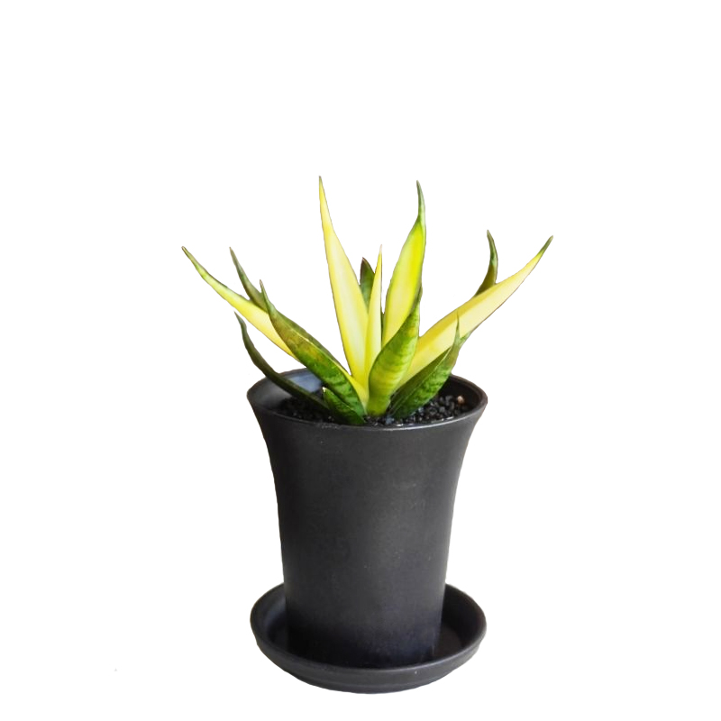 Сансевієрія 'Комет Кризанта Лемон' - компактний, високодекоративний сукулент з мечоподібним листям яскраво-жовтого та зеленого кольору. Цей рідкісний сорт ідеально підходить для оформлення інтер'єру, вирізняючись невибагливістю, стійкістю до посухи, низького освітлення та сухого повітря.